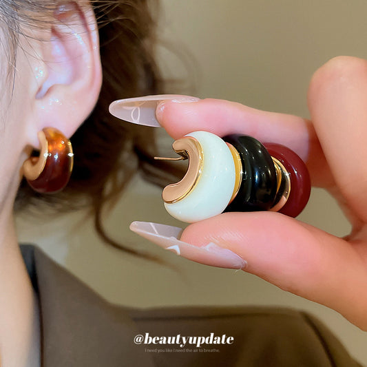 A廠【WE4739】18K真金電鍍樹脂幾何秋冬新款耳環復古港風耳環小眾設計感耳飾女 25.10-2