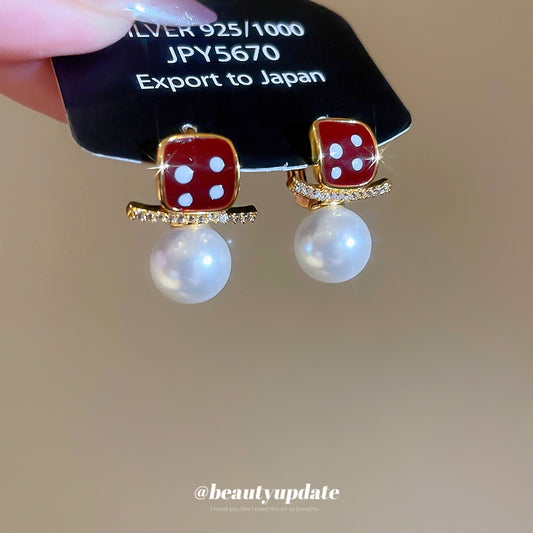 A廠【HE28827】925銀針噴漆U形珍珠吊墜耳環復古港風氣質耳環時尚小眾設計感耳環女 25.10-1