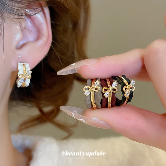 A廠【WE4709】18k真金電鍍925銀針鑲鑽蝴蝶結C型耳環復古港風耳環輕奢高級感耳飾女 25.10-2