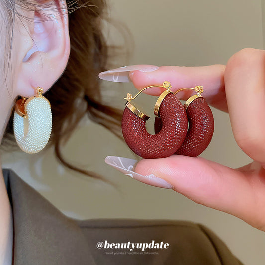 A廠【WE4826】復古滴油U形凹面吊墜耳環時尚簡約港風氣質耳環小眾設計感耳飾女 25.10-1