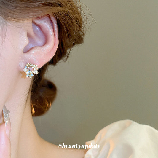 A廠【HE21411】925銀針藍色花朵滴油鑲鑽耳環ins小清新甜美耳環夏季新款百搭耳環女 24.07-2