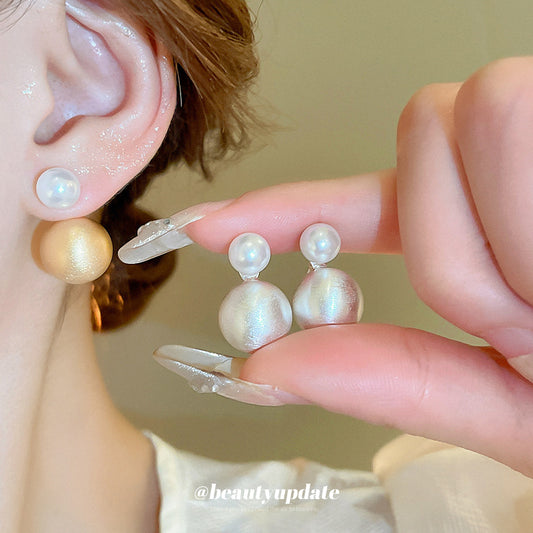 A廠【HE21335】925銀針高級感珍珠雙面帶耳環小眾輕奢百搭耳環時尚新款簡約通勤耳環 24.07-2