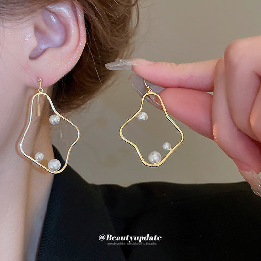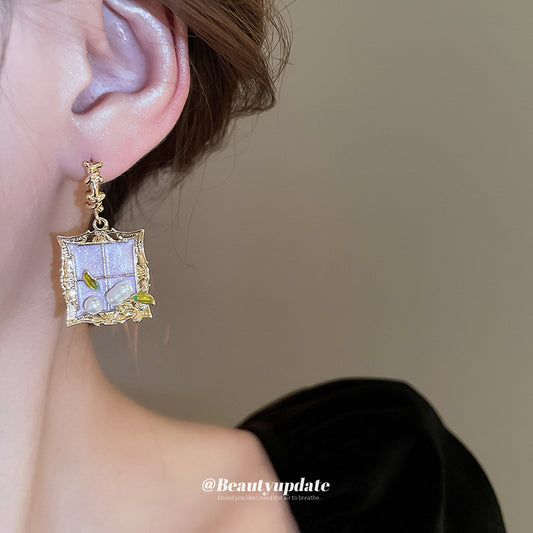 A廠【HE21294】法式復古方形樹葉珍珠耳環女輕奢優雅氣質耳環高級感小眾文藝耳環 24.07-2