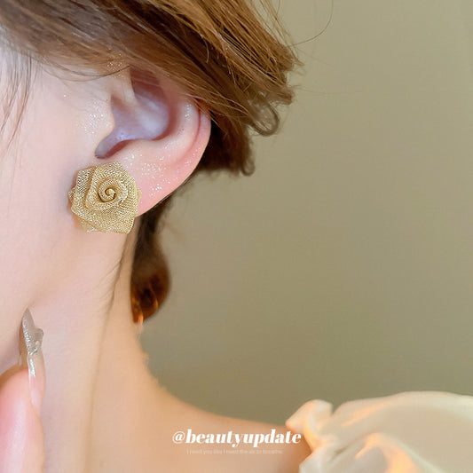 A廠【HE21293】真金電鍍925銀針冷淡風褶皺花朵耳環輕奢時尚耳環簡約高級感耳飾 24.07-2