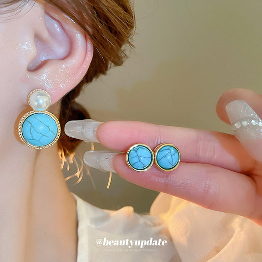 A廠【HE21358】真金電鍍925銀針高級感松石珍珠耳環復古輕奢氣質耳環簡約時尚耳環女 24.07-2