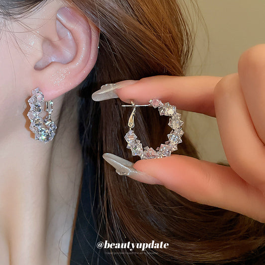 A廠【HE20741】輕奢鋯石愛心星星圓形無耳洞耳骨夾個性潮流耳環時尚冷淡風耳環女 24.06-1