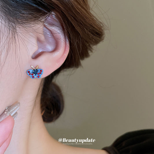 A廠【HE20332】925銀針滴油蝴蝶鑲鑽耳環森系甜美設計感耳環小眾個性創意設計感耳飾 24.05-3