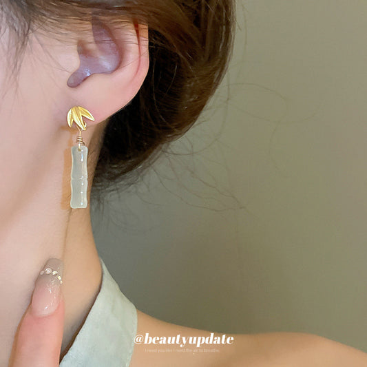 A廠【HE20264】925銀針新中式竹節竹葉耳環玉色高級感幾何耳墜國風漢服旗袍百搭配飾 24.05-3