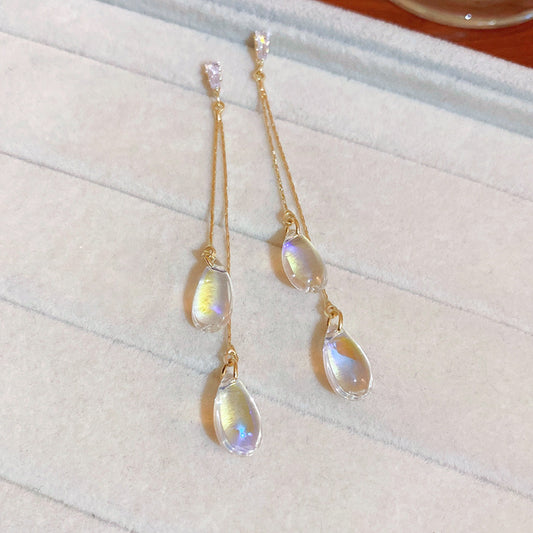 A廠【HE9649】銀針鋯石水滴流蘇耳環ins簡約小清新時尚長版耳環超仙設計感耳飾 24.02-3