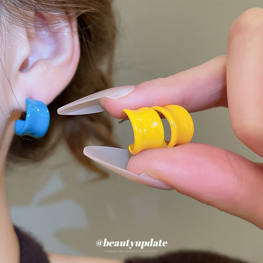 A廠【HE28778】925銀針滴油凹面C形耳環多巴胺小清新百搭氣質耳環小眾設計感耳飾女 25.10-1