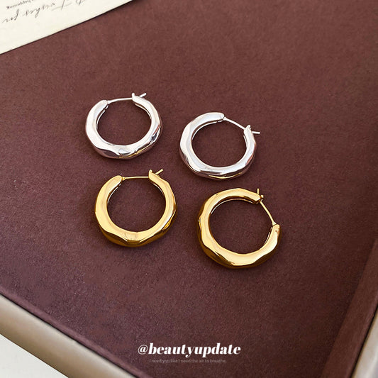 A廠【HE28799】925銀針歐美波浪不規則圓形吊墜金屬耳圈時尚百搭耳環小眾設計感耳飾 25.10-1