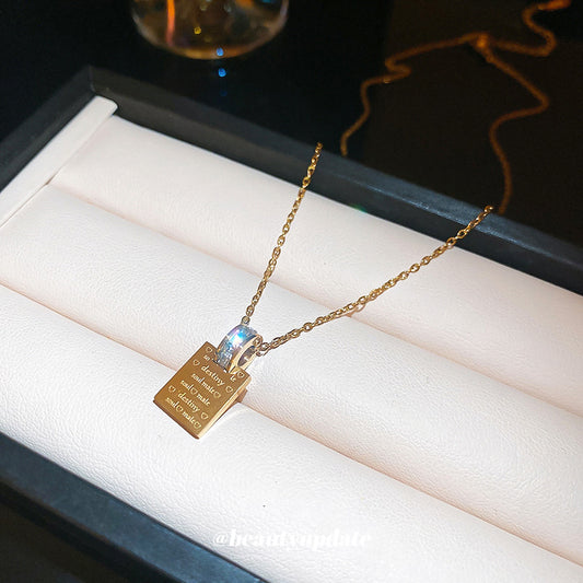 A廠【HN7922】鈦鋼不銹鋼方形鋯石字母項鍊女小眾百搭鎖骨鏈時尚輕奢高級感飾品 24.11-5