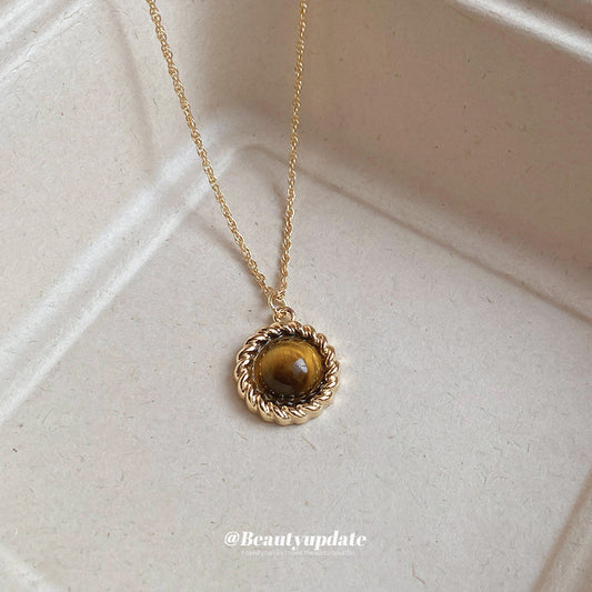 A廠【HN7979】美拉德圓形虎眼石項鍊女時尚氣質輕奢毛衣鏈高級感小眾百搭飾品 24.12-2
