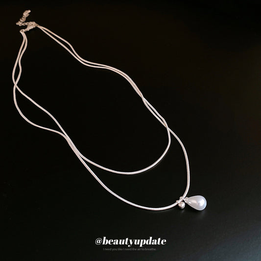 A廠【HN7829】跨境雙層水滴珍珠項鍊女百搭簡約冷淡風輕奢鎖骨鏈高級感飾品配件 24.11-4