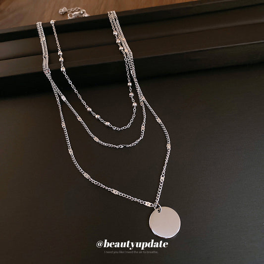 A廠【HN7600】簡約圓形吊墜項鍊女冷淡風時尚百搭鎖骨鍊氣質輕奢高級感飾品配件 24.12-2