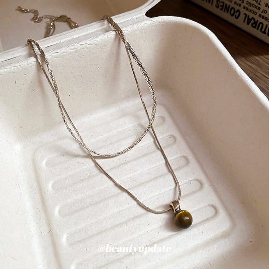 A廠【HN7928】美拉德虎眼石款雙層項鍊女小眾復古鎖骨鏈時尚輕奢高級感飾品配件 24.11-5