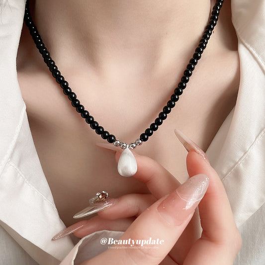 A廠【HN7677】圓形玻璃珠串珠水滴項鍊輕奢高級感鎖骨鏈時尚百搭氣質項鍊 24.11-1