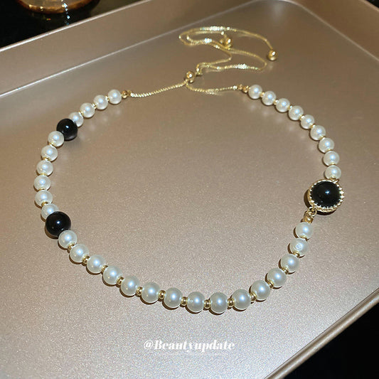 A廠【HN7736】法式復古圓球珍珠項鍊女百搭可調式毛衣鏈高級感簡約小眾氣質飾品 24.11-1