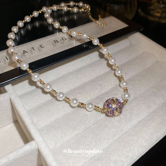 A廠【HN7703】真金電鍍鑲鑽圓球磁吸珍珠項鍊高級感氣質鎖骨鏈輕奢設計感項鍊飾女 24.11-1