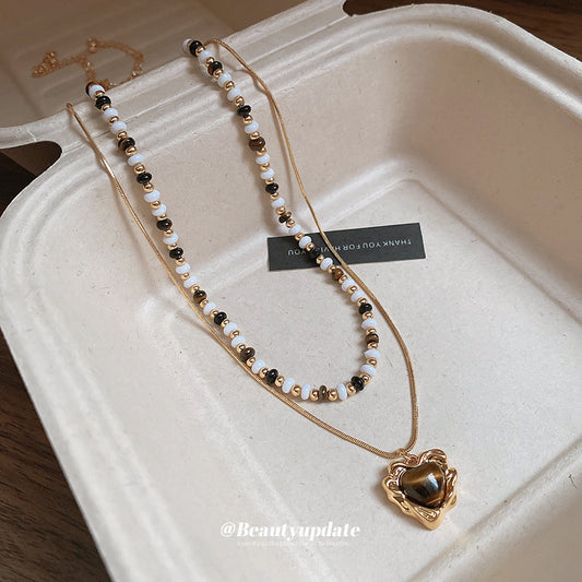 A廠【HN7692】真金電鍍愛心虎眼石款串珠項鍊輕奢復古高級感鎖骨鏈小眾氣質項鍊 24.11-1
