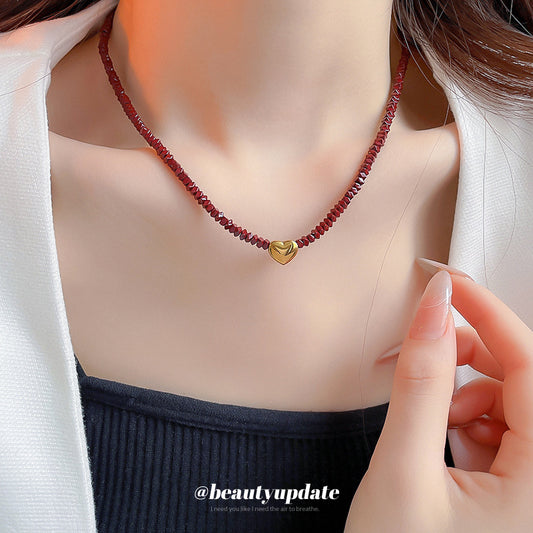 A廠【HN7695】安可拉紅愛心串珠項鍊女百搭小眾設計鎖骨鏈簡約個性輕奢項鍊飾 24.11-1