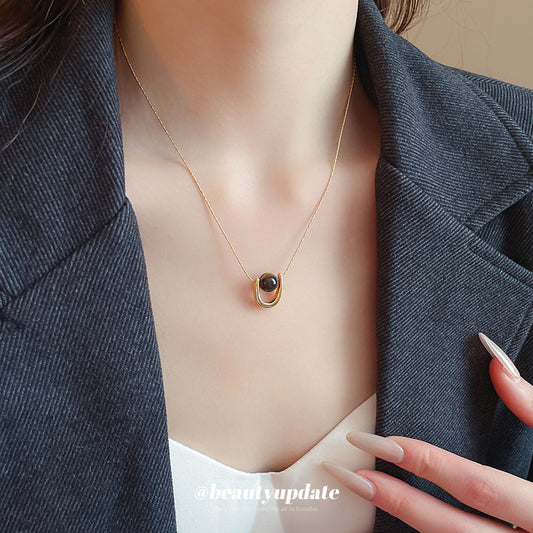 A廠【HN7739】跨境人造虎眼石鈦鋼項鍊女百搭小眾簡約鎖骨鏈高級感輕奢飾品配件 24.11-1