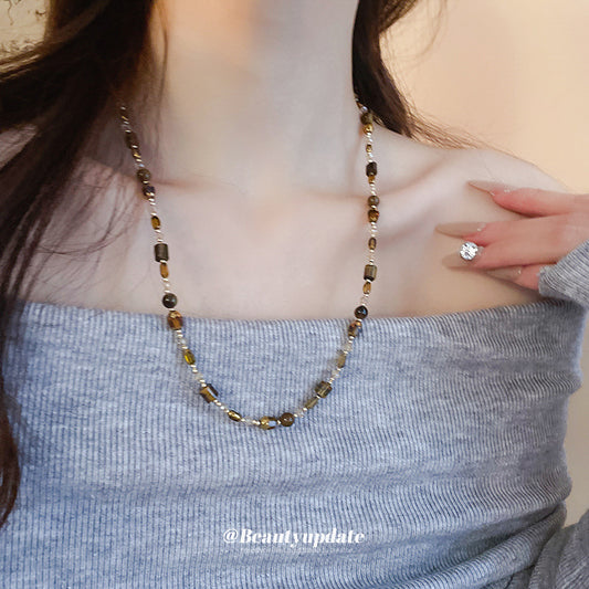 A廠【HN7741】美拉德虎眼石款串珠項鍊女秋冬輕奢時尚毛衣鏈高級感小眾飾品配件 24.11-2