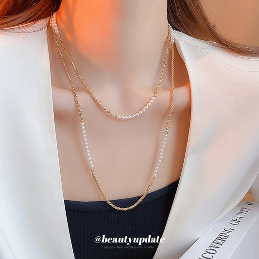 A廠【HN7052】復古雙層米粒珍珠項鍊女高級感輕奢小眾疊戴鎖骨鏈脖設計感頸鍊女 24.07-4