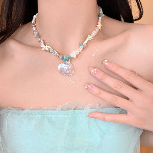 A廠【HN4032】多巴胺水晶貝殼星星珍珠項鍊時尚小眾度假風鎖骨鍊個性氣質項鍊飾女 24.07-4