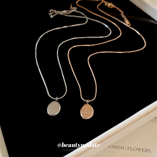 A廠【HN2838】鈦鋼不銹鋼精緻豆豆字母牌吊墜項鍊跨國氣質鎖骨鏈輕奢高級感飾品 24.08-2