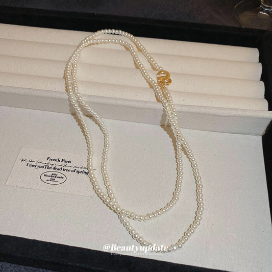 A廠【HN7180】法式疊戴風環扣設計珍珠項鍊氣質氛圍感鎖骨鍊毛衣鍊高級感飾品女 24.08-2