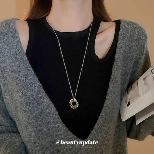 A廠【HN6962】冷淡風疊戴纏繞環環相扣鋯石吊墜項鍊獨特設計毛衣鏈輕奢時尚飾品 24.08-2
