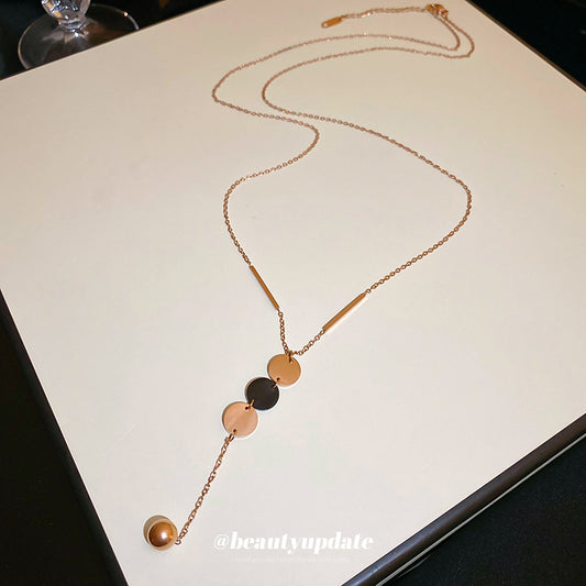 A廠【HN7176】鈦鋼不鏽鋼長幾何圓球吊墜項鍊氣質簡約設計毛衣鏈時尚百搭飾品 24.08-2