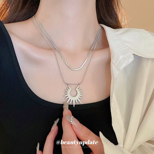 A廠【HN6493】鈦鋼不銹鋼雙層太陽吊墜項鍊時尚氣質鎖骨鏈歐美輕奢高級感飾品女 24.06-4