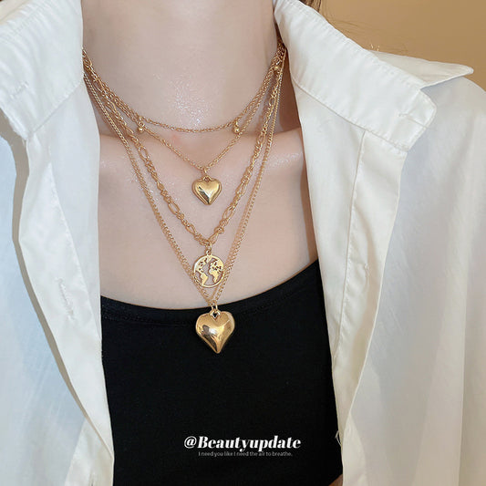 A廠【HN6638】歐美跨境多層愛心吊飾項鍊時尚小眾鎖骨鍊氣質輕奢高級感飾品 24.06-4