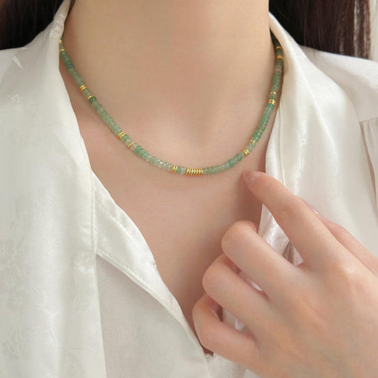 A廠【HN6795】小清新國風綠色串珠項鍊配件女夏天輕奢鎖骨鏈小眾高級感氣質飾品 24.06-4