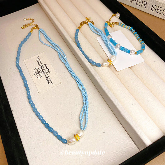 A廠【HN6760】法式高級感海藍寶淡水珍珠項鍊手鏈套裝輕奢百搭鎖骨鏈 24.06-4