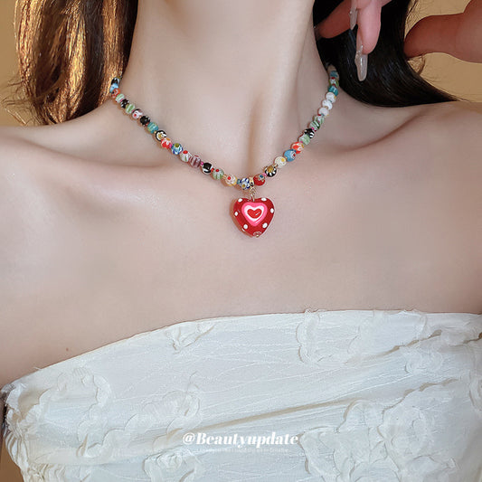 A廠【HN6274】多巴胺彩色滴油愛心花朵琉璃項鍊少女心甜美鎖骨鏈時尚百搭項鍊飾女 24.05-4