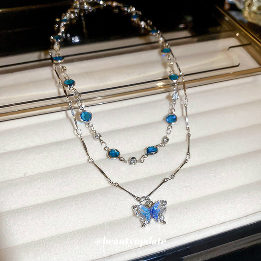 A廠【HN6557】ins風高級感水晶蝴蝶項鍊公主風甜美鎖骨鏈輕奢小眾高級感項鍊飾女 24.06-3