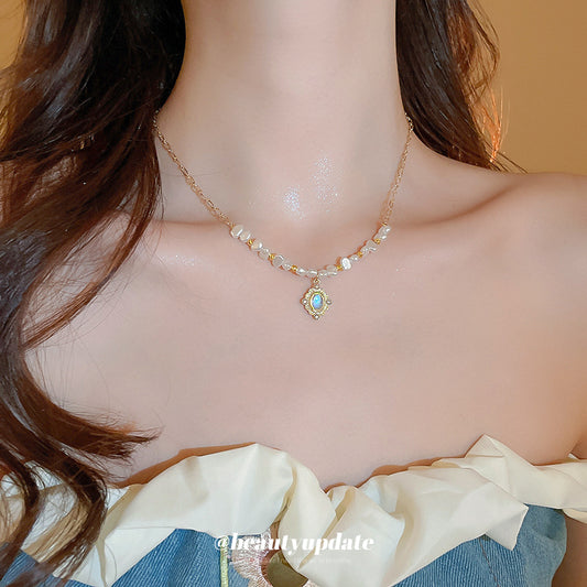 A廠【HN6448】法式宮廷風月光石淡水珍珠項鍊高級感時尚輕奢鎖骨鏈爆款百搭頸鍊 24.06-2