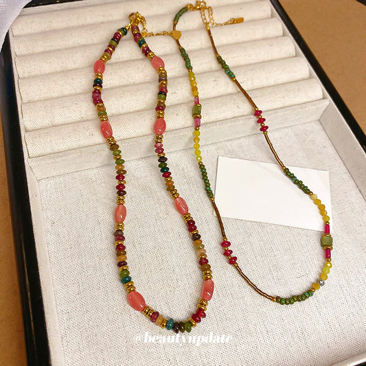 A廠【HN6758】彩色幾何天然石串珠項鍊復古個性小眾鎖骨鏈輕奢高級感飾品女 24.06-4