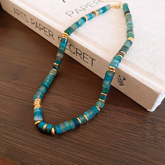 A廠【HN6342】中古風墨綠天然石串珠項鍊個性時尚大氣鎖骨鏈歐美爆款輕奢頸鍊女 24.05-5