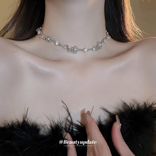 A廠【HN5463】鑲鑽花朵珍珠choker項鍊小眾高級感氣質鎖骨鏈時尚百搭頸鍊 24.03-2