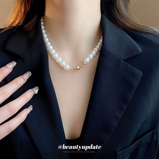 A廠【HN5439】法式復古珍珠磁吸項鍊法式大氣簡約高級感毛衣鏈時尚百搭頸鍊 24.03-2