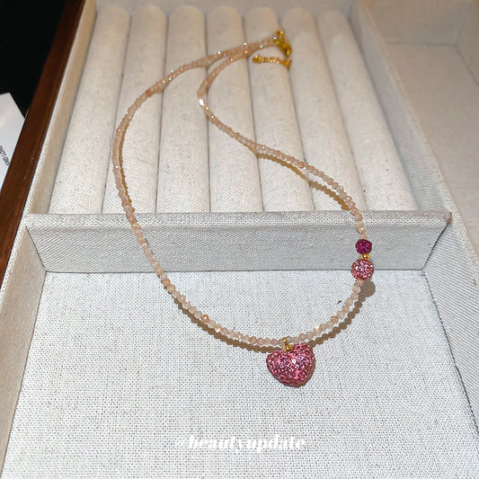 A廠【HN5521】鑲鑽水晶愛心吊墜項鍊韓系甜美設計感鎖骨鍊頸鏈小眾簡約新款項飾 24.03-3