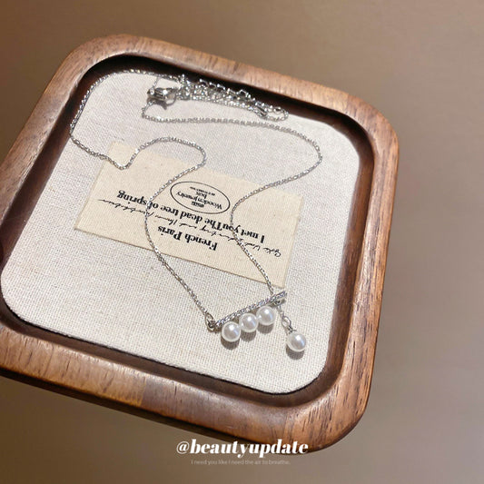 A廠【HN8978】鋯石平衡木珍珠抽拉式項鍊2025新款爆款鎖骨鏈輕奢高級感頸鍊 25.06-1