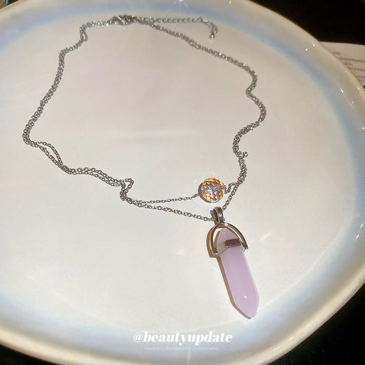 A廠【HN8367】鈦鋼粉晶雙層吊墜項鍊輕奢小眾設計鎖骨鏈時尚個性簡約頸鍊項鍊飾女 25.04-3