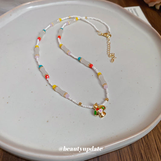 A廠【HN8529】多巴胺彩色蘑菇項鍊海邊度假風新款百搭鎖骨鏈輕奢高級感項鍊飾 25.04-3