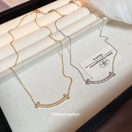 A廠【TN10】鈦鋼笑臉弧形T形項鍊個性簡約時尚百搭鎖骨鏈輕奢高級感項鍊飾 25.04-3