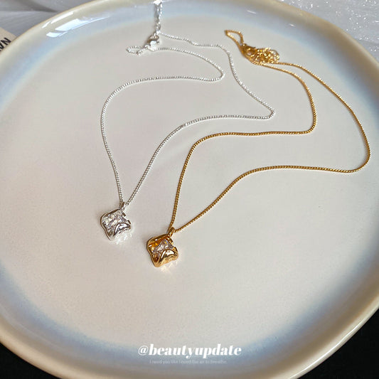 A廠【HN8481】18k真金電鍍鋯石鏤空方形項鍊輕奢高級感鎖骨鏈復古小眾百搭頸鏈 25.04-3